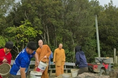 8.15am monastics walk down Stokes Valley Road to the shopping area to collect alms.